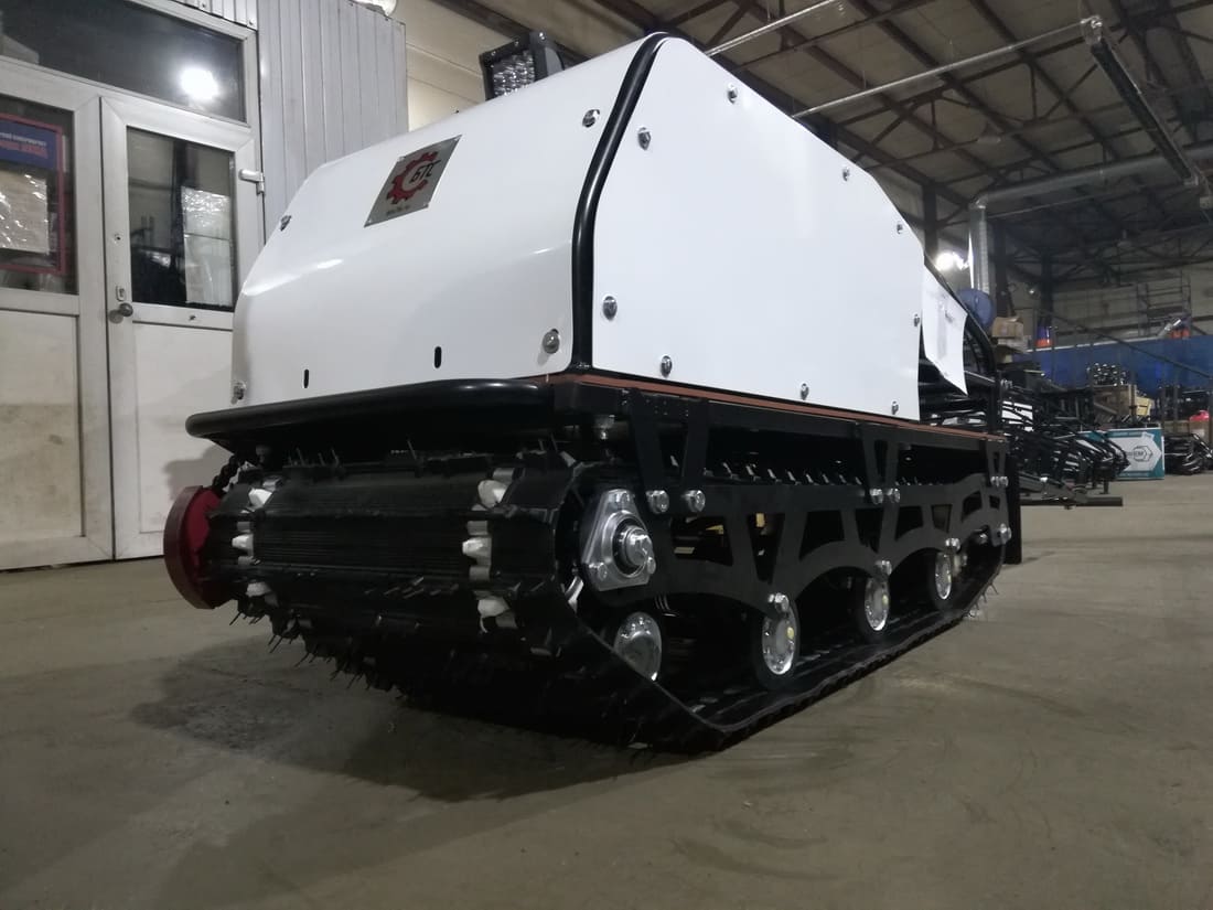 Модель оснащена гусеницей шириной 500 мм. Гусеница в сочетании с катковой подвеской способна проходить спокойно по льду и даже по территории без снега.
