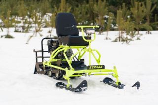 Оснащен гусеницей шириной 380 мм. Разборная конструкция позволяет легко транспортировать агрегат в багажнике автомобиля. В базовое оснащение включен лыжный модуль. Аккумулятор не входит в комплект поставки.