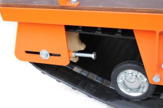 В конструкции мотовездехода используется цельная резиновая гусеница шириной 500 мм. Площадь опоры гусеницы улучшает тяговые характеристики, проходимость и устойчивость буксировщика.