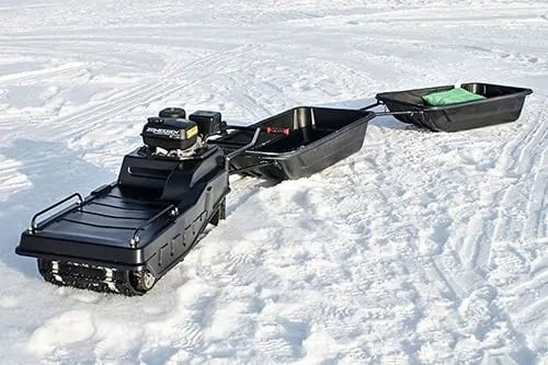 Мотособака оснащена 4-х тактным двигателем мощностью 6,5 л. с., что позволяет достигать скорости до 20 км/ч. Это позволяет быстро перевозить общий груз до 240 кг в санях и на платформе мотособаки. Объем двигателя составляет 196 кубов.