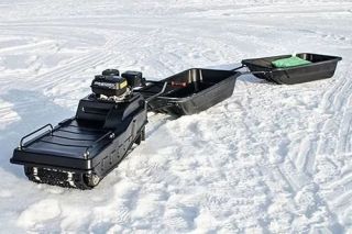 Мотособака весит 65 кг, а размер ее составляет 220 см в длину, 55 см в ширину и 55 см в высоту. Модель оснащена гусеницей шириной 380 мм. Гусеница в сочетании с катковой подвеской способна проходить спокойно по льду и даже по территории без снега.