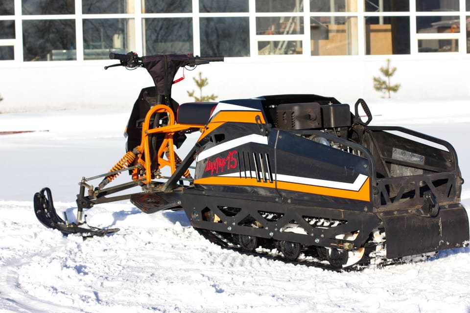 Мотособака весит 100 кг, а размер ее составляет 155 см в длину, 62 см в ширину и 78 см в высоту. Благодаря своей легкости и компактности, мотобуксировщик способен маневрировать и проходить по рыхлой и мягкой почве. К тому же мотобукс оснащен катковой подвеской, которая сглаживает ход, обеспечивает устойчивость на неровной поверхности, смягчает удары и вибрации от дороги.
