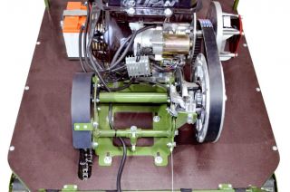 Мотособака оснащена 4 тактным мотором мощностью 15 лошадиных сил, что позволяет набирать скорость до 40 км/ч. Это максимальная скорость, которая позволит владельцу быстро перевезти груз 540 кг. Мотобуксировщик отличается экономным расходом топлива - потребляет всего 3 л бензина в час. Объем двигателя достигает 420 кубов, что значительно сказывается на мощности и производительности мотобукса.