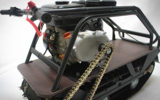 При этом крепление руля находится максимально низко (на уровне гусеницы), т.е. сила, которую вы прикладываете для поворота не стремится опрокинуть буксировщик на бок, так как если бы руль крепился выше (например на уровне двигателя).