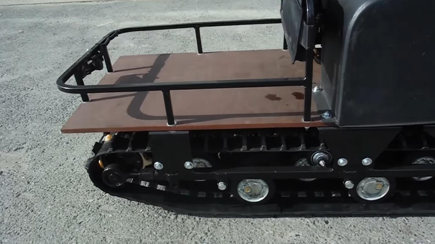 Катковая подвеска упрощена и не дает гусенице забиваться снегом. Также на данном мотобуксировщике установлены обрезиненные катки с сальниками и ведомая звезда, которая самоочищается от снега и льда. На мотобуксировщике также установлена настраиваемая рукоятка, регулируемая по высоте в зависимости от роста водителя.