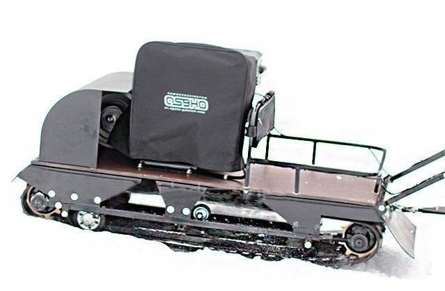 Мотобукс весит 100 кг, а размеры машины составляют 170 см в длину, 55 см в ширину и 66 см в высоту. Модель оснащена гусеницей с отличным сцеплением с поверхностью льда и снега шириной 500 мм. Гусеница в сочетании с катковой подвеской способна проходить спокойно по льду и даже по территории без снега.