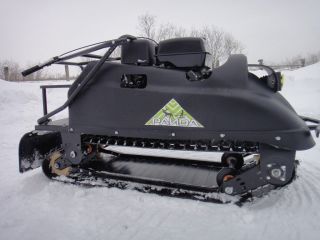 Мотобукс весит 103 кг, а размеры машины составляют 150 см в длину, 54 см в ширину и 84 см в высоту. Модель оснащена гусеницей с отличным сцеплением с поверхностью льда и снега шириной 500 мм. Гусеница в сочетании с катковой подвеской и подпружиненными тележками способна проходить спокойно по льду и даже по территории без снега.