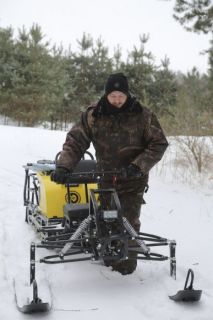 В конструкции мотовездехода используется цельная резиновая гусеница Composit шириной 500 мм. Гусеница в сочетании с катковой подвеской способна проходить спокойно по льду и даже по территории без снега.