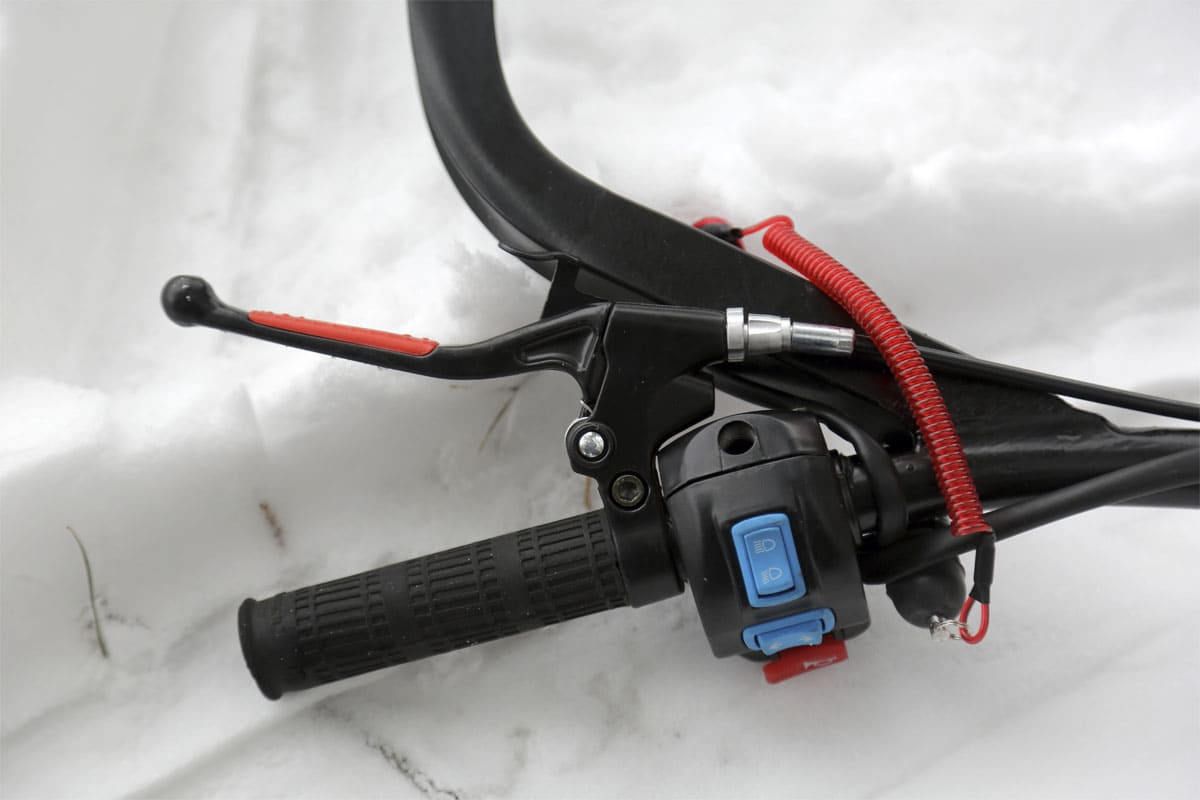 В конструкции мотовездехода используется цельная резиновая гусеница Composit шириной 500 мм. Гусеница в сочетании с катковой подвеской способна проходить спокойно по льду и даже по территории без снега.