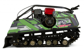 Конструкция мотобуксировщика Sharmax S500 HP23 устроена таким образом, что позволяет без особого труда устанавливать к ней и использовать любые шасси, предназначенные для различных условий эксплуатации. Универсальные посадочные отверстия основы и кузова мотобуксировщика Sharmax HP23 могут использоваться на склизовой, катковой и даже колёсной подвеске.