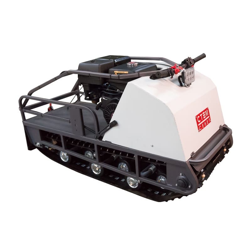 В конструкции мотовездехода используется цельная резиновая гусеница шириной 500 мм. Гусеница в сочетании с катковой подвеской способна проходить спокойно по льду и даже по территории без снега.