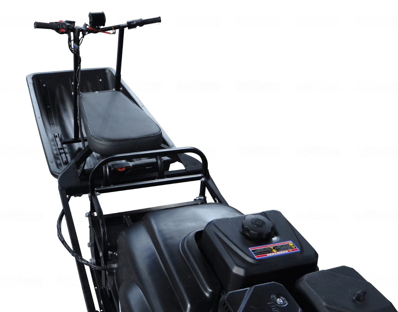 Буксировщик оснащен 4-х тактным двигателем мощностью 15 л. с. и объемом 420 кубов, достигающий скорость до 40 км/ч. Это позволяет быстро перевозить груз до 300 кг на специальной багажной площадке мотобуксировщика. Также есть возможность установить сани к мотобуксу, что позволит перевозить дополнительно до 400 кг.