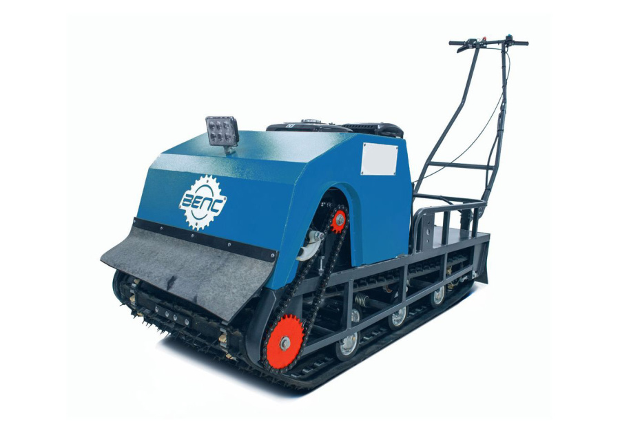 Модель оснащена гусеницей шириной 600 мм. Гусеница в сочетании с катковой подвеской способна проходить спокойно по льду и даже по территории без снега.