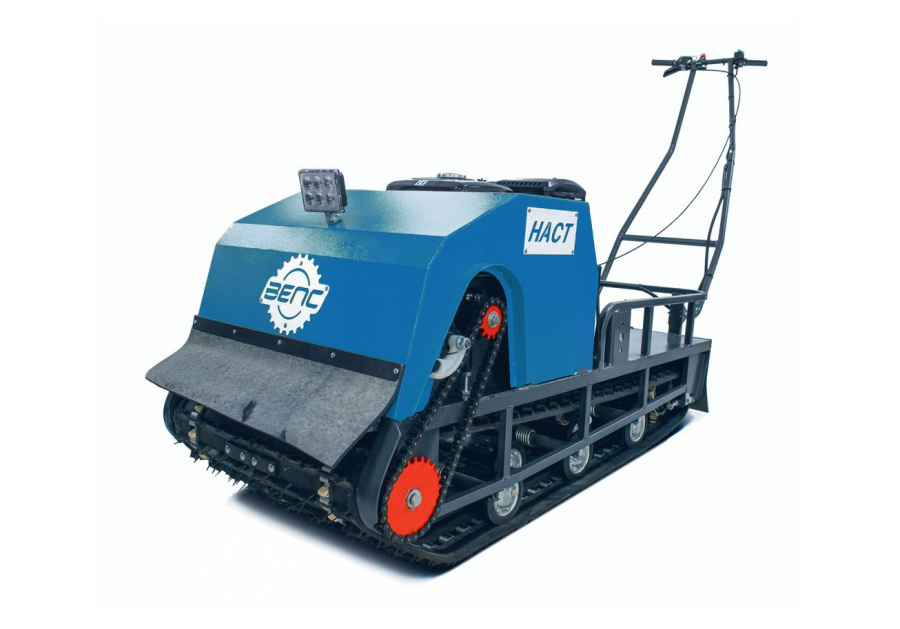 Модель оснащена гусеницей шириной 600 мм. Гусеница в сочетании с катковой подвеской способна проходить спокойно по льду и даже по территории без снега.