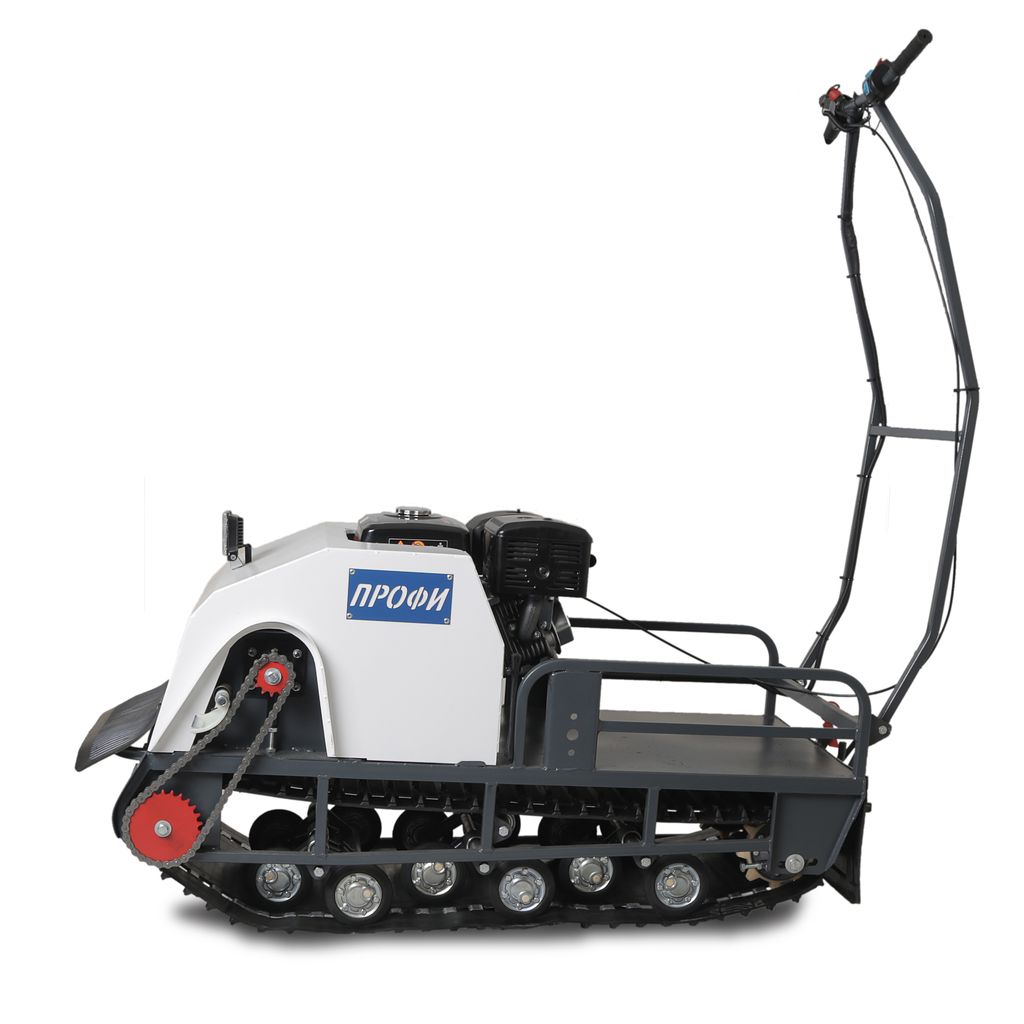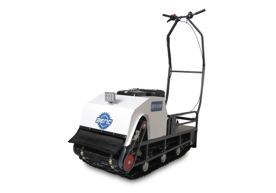 Модель оснащена гусеницей шириной 500 мм. Гусеница в сочетании с катковой подвеской способна проходить спокойно по льду и даже по территории без снега.