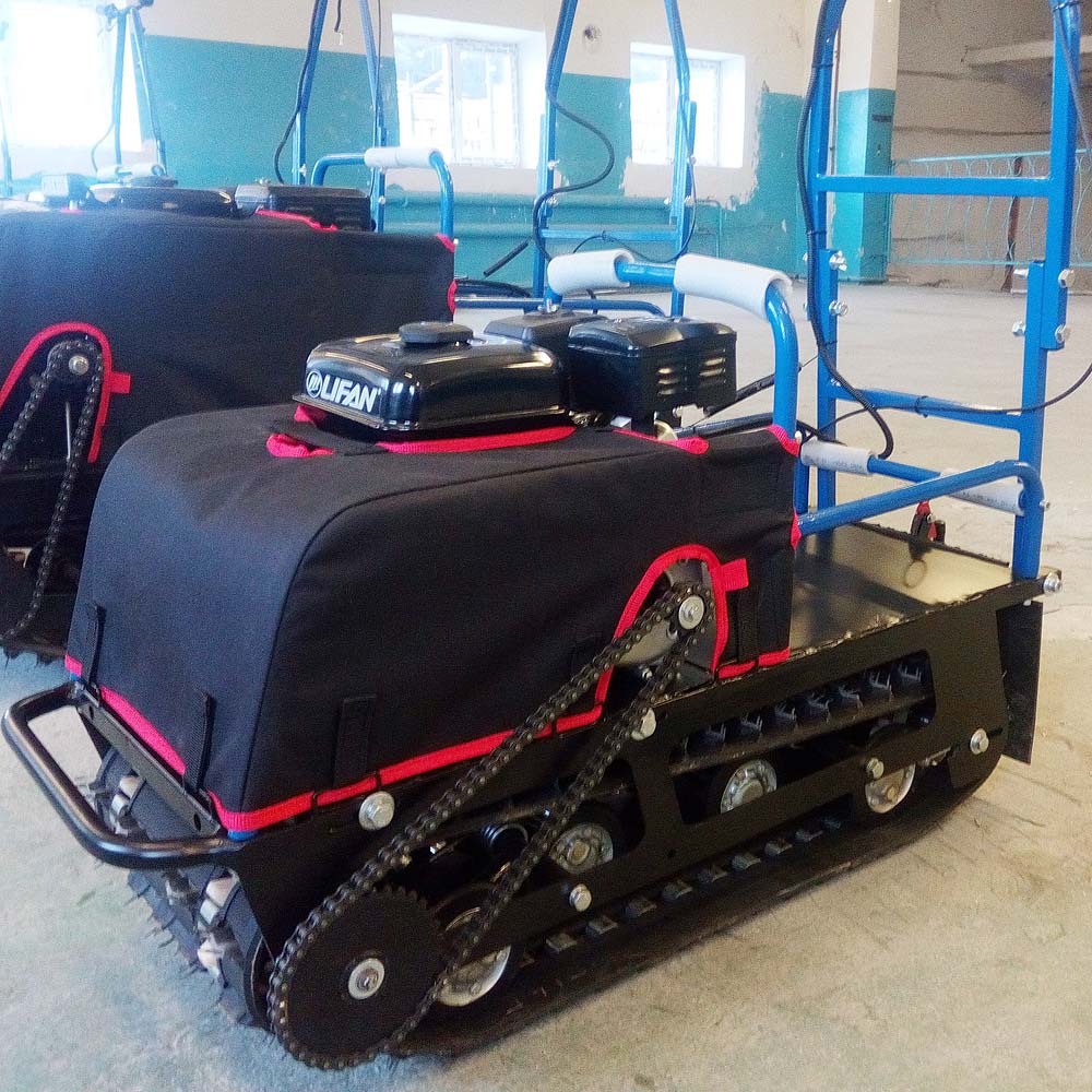 В конструкции мотовездехода используется цельная резиновая гусеница шириной 380 мм. Площадь опоры гусеницы улучшает тяговые характеристики, проходимость и устойчивость буксировщика.