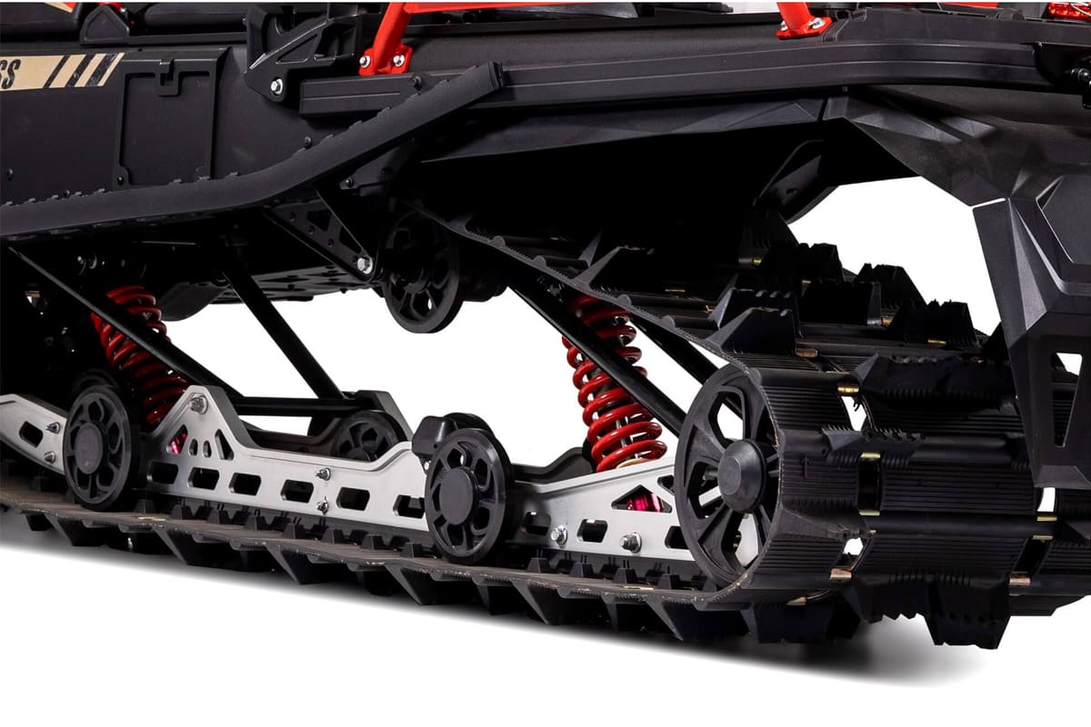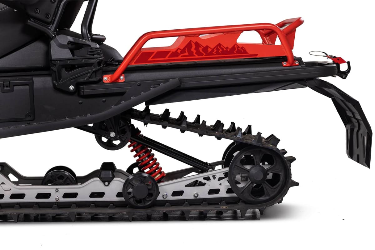 Гусеницы снегохода отличаются четким сцеплением со снегом и обеспечивают безопасность райдеру. Особенно это важно, когда речь идет о подъемах по заснеженным тропам. На снегоходе установлена: