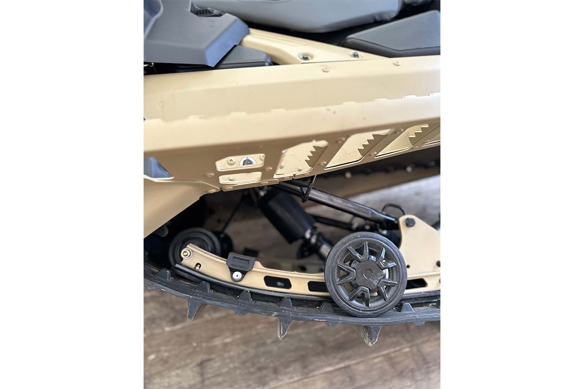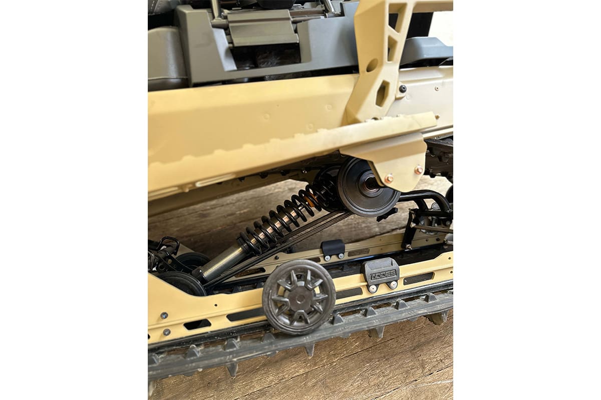 Гусеницы снегохода отличаются четким сцеплением со снегом и обеспечивают безопасность райдеру. Особенно это важно, когда речь идет о подъемах по заснеженным тропам. На снегоходе установлена: передняя подвеска — двойные A-образные рычаги.