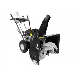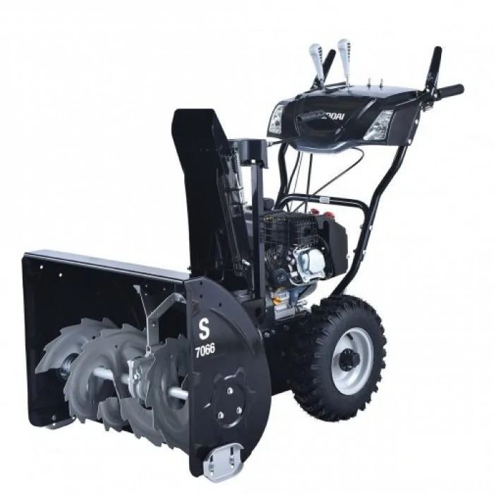 Эта модель снегоуборочной техники демонстрирует эффективность при работе с плотным и свежим снегом. Она также оснащена специальными рычагами на панели управления, которые позволяют регулировать высоту и направление выброса снега. Основные преимущества модели:
