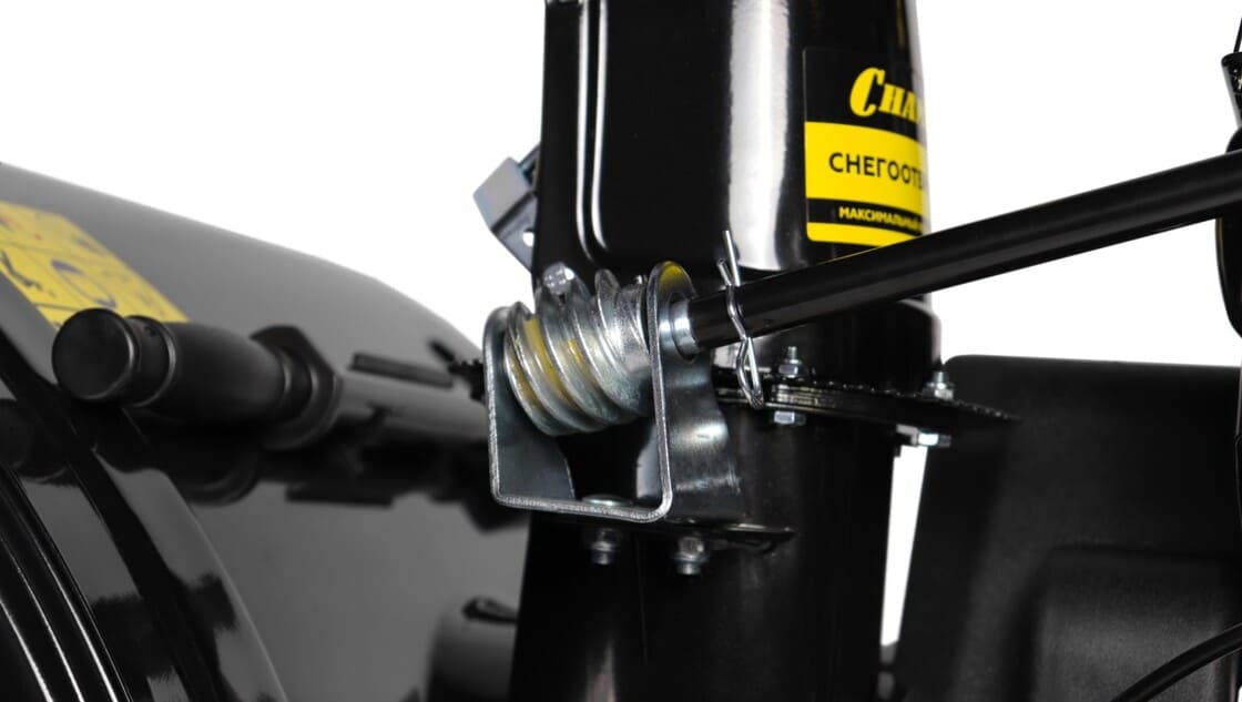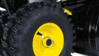 Данная снегоуборочная машина включает в себя двигатель на бензине четырехтактного типа с вертикальным способом расположения. Благодаря подобной оснастке агрегат эффективен для работы в периоды мороза и при проблемной погоде. Край шнека, оснащенный зубцами, дополнительно наделяет снегоуборщик функцией разбивки и дробления льда. А колесный привод самоходного типа значительно упрощает трудовую деятельность оператора.