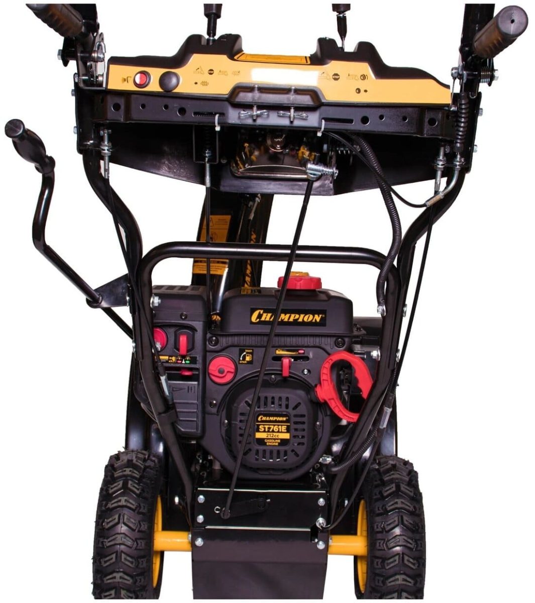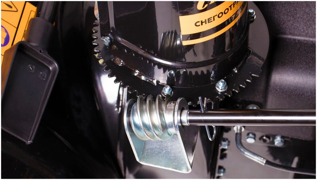 Ручной стартер. Используется для запуска двигателя и находится в удобном и доступном месте на задней части снегоуборщика в виде рычага.