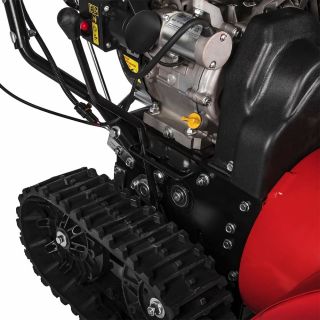 - удобная рукоятка: расположена за желобом, что облегчает подъем и перемещение снегоуборщика;
