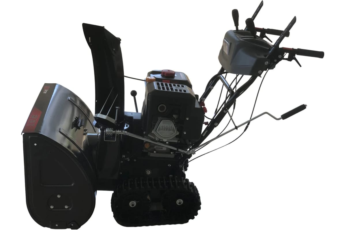 Снегоуборщик имеет 2-ступенчатый тип выброса снега, что обеспечивает дальнюю и точную выброску, повышая производительность. Удобство использования обеспечивается как электрическим, так и ручным стартером. Гусеницы гарантируют легкость и маневренность на разных поверхностях. Трансмиссия с фрикционным диском предлагает 6 скоростей вперед и 2 назад, что позволяет адаптироваться к условиям.