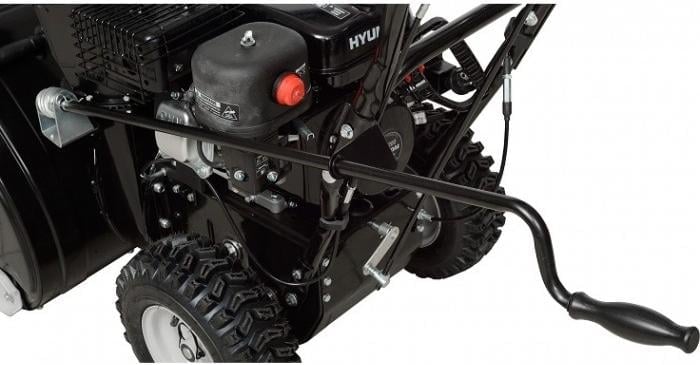 Эта модель снегоуборочной техники демонстрирует эффективность при работе с плотным и свежим снегом. Она также оснащена специальными рычагами на панели управления, которые позволяют регулировать высоту и направление выброса снега. Основные преимущества модели:
