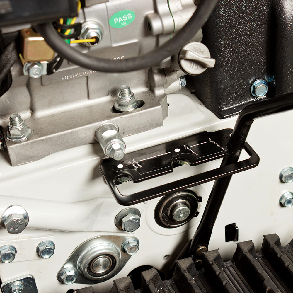 • ● надежная система передачи обеспечивает плавное регулирование направления и дальности выброса снега;
