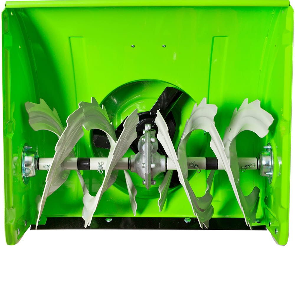 • ● металлический поворотный жёлоб выброса снега с подпружиненным рассекателем;