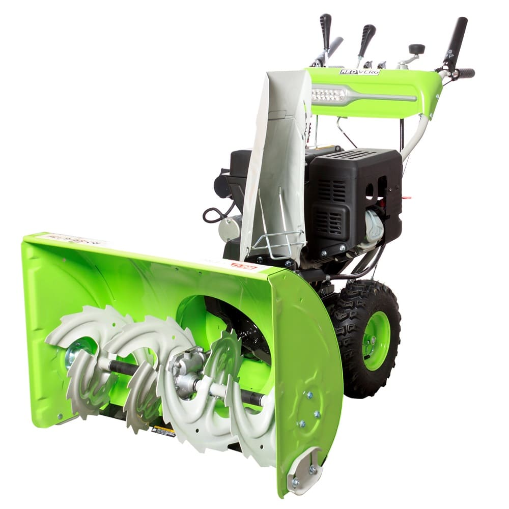 Самоходный снегоуборщик РедВерг оснащен бензиновым двигателем с воздушным охлаждением мощностью 13 лошадиных сил. Вместе с колесами с глубоким протектором, снегоуборочная техника легко перемещается, так как колеса предотвращают пробуксовку на обледенелых участках.